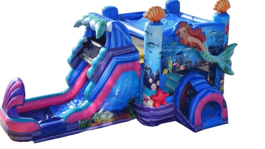 The Majestic Mermaid Combo will take your imagination into the deep seas, where mermaids roam! This bounce house combo can be used wet or dry! Perfect for any season and any event! Bounce, climb, slide, and have a great time at your next event, with the Majestic Mermaid Combo!