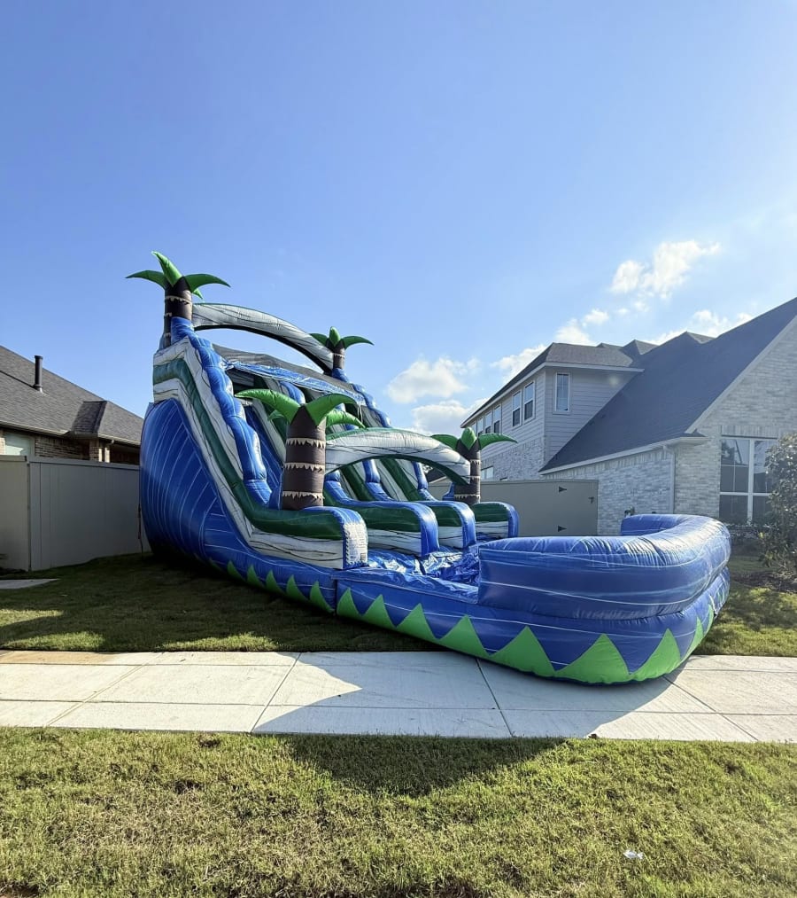 Looking for the ultimate way to beat the Texas heat and create unforgettable memories? The Blue Wave Racer double 18ft waterslide is your ticket to endless fun! Perfect for backyard parties, family gatherings, birthdays, or any special event, this vibrant tropical-themed waterslide brings a splash of excitement to every occasion. 🌴💦