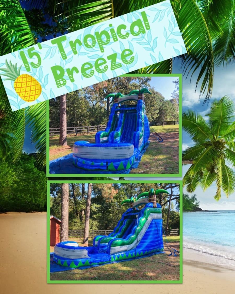 In need of a tropical vacation?! Our vibrant 15ft Tropical Breeze slide brings the beauty of the beach to you! With its popping colors and beautiful design, this slide will have you thinking you've brought the beach to your very own yard!